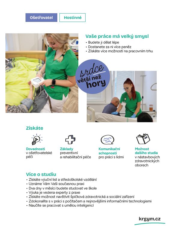 Ve školním roce 2026-2027 budeme otevírat obor Ošetřovatel dálkově.